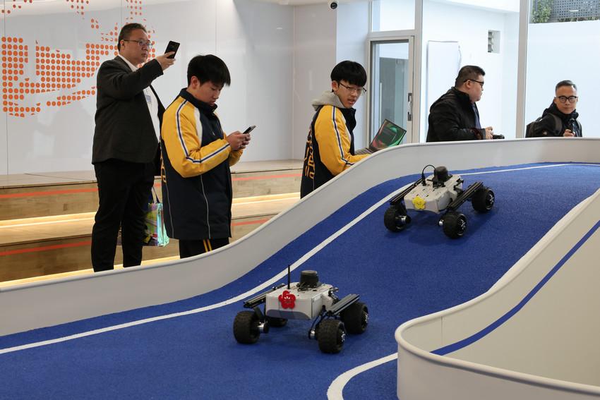此外,怡海中学还将以基地为核心,组建怡海ROAR学子战队,并推动学生参与全国乃至国际级自动驾驶赛事,在真实赛道场景中提升创新能力与工程素养。当天,在实训基地的专业赛道上,学生团队场地实战,感受智慧与技术在赛场上的碰撞。赛道上,搭载着学生自编算法的赛车蓄势待发,随着指令下达,车辆如离弦之箭般冲出起点。责任编辑:韩璐(EN053)